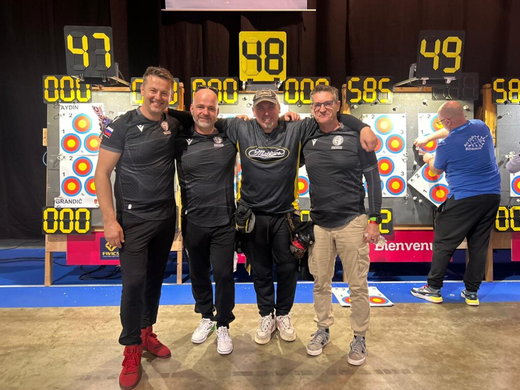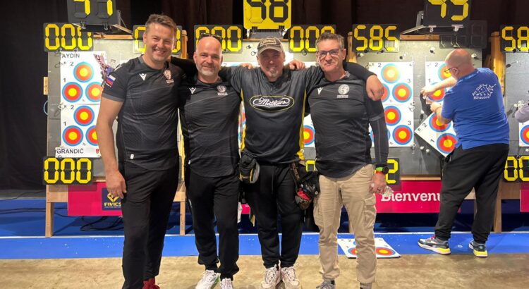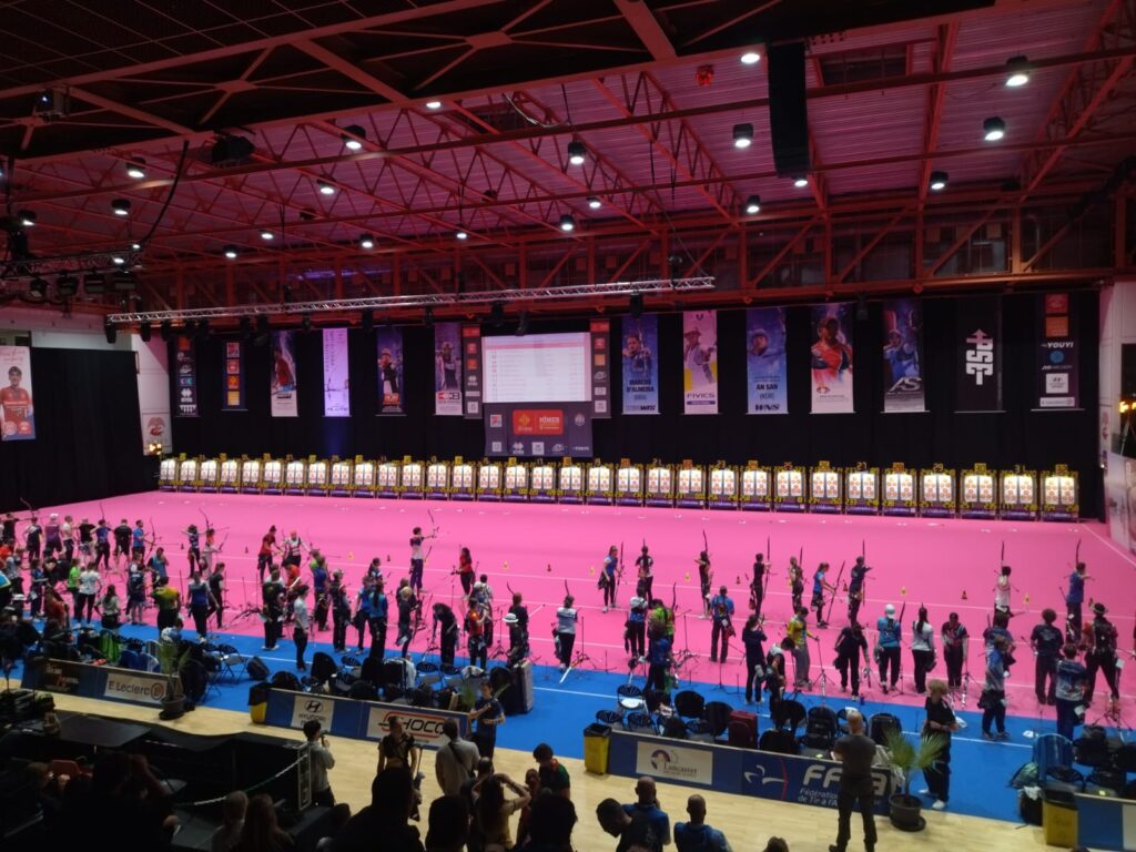 Prejšnji vikend se je v času 16.-18.01.2026 odvil že tradicionalni lokostrelski turnir v Nimesu v Franciji, ki šteje letos za svetovno rang lestvico – IWS Stage 5. Tekmovanje je vedno zelo dobro obiskano in odlično organizirano. Že od nekdaj pa je slovelo tudi po obisku številnih gledalcev in po šovu, ki ga organizator vsako leto ustvari. A letos je najbrž doseglo tudi rekorden obisk; nastopilo je namreč kar 1355 tekmovalcev iz kar 50 držav. Skoraj polovica je bila sicer Francozov, slabih 10% Italijanov in dobrih 10% Špancev. Iz Slovenije je nastopilo kar 32 tekmovalcev, med njimi pa je bilo kar 7 članov našega kluba: Zarja Mahnič RU21W, Svit Katarinčič RU21M, Jure Grandič CU21M, Viktor Primožič Gogala CM ter Denis Fink, Robi Luštrek in Marko Petri, vsi trije C50+M. Zarja se je med 53 udeleženkami z rezultatom 536 uvrstila na 25. mesto, Svit med 61 udeleženci z rezultatom 524 na 45. mesto, Jure med 59 udeleženci z odličnim rezultatom 581 (le 7 krogov manj od zmagovalca) na 10. mesto, Viktor med 172 udeleženci z rezultatom 571 na 111. mesto; v kategoriji C50+M je nastopilo 64 tekmovalcev, med katerimi se je Denis z rezultatom 561 uvrstil na 32. mesto, Robi z rezultatom 551 na 46. mesto in Marko z rezultatom 531 na 58. mesto.